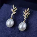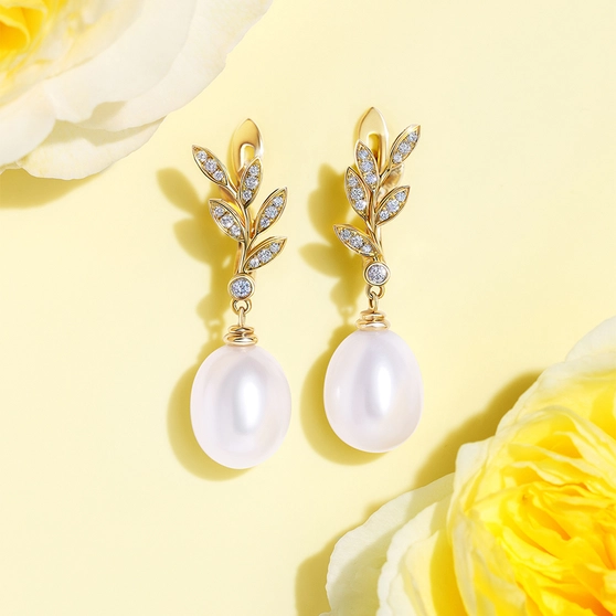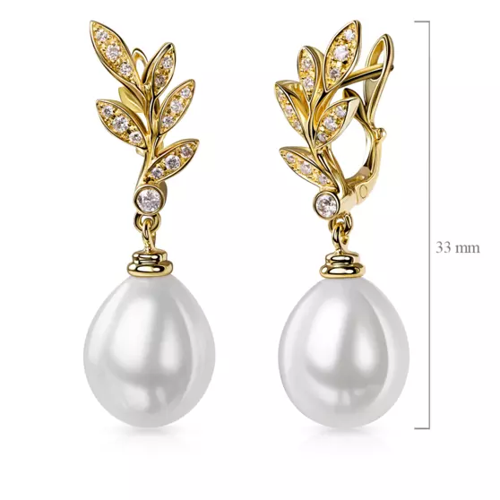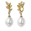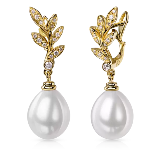 Изящные серьги с грушевидными жемчужинами в окружении бриллиантовых листочков.