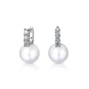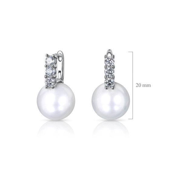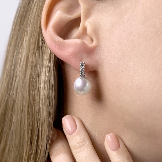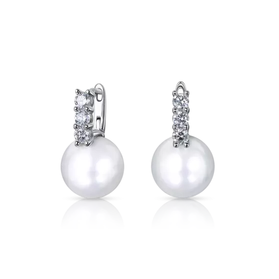 Серьги с эффектными белыми жемчужинами Южных морей. Деликатно украшены бриллиантовыми дорожками.