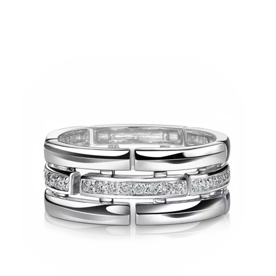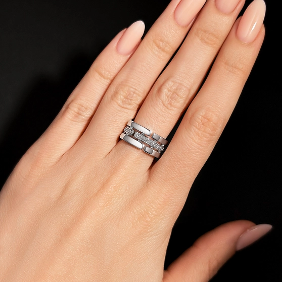 Кольцо STRIPES с бриллиантовой дорожкой. Гибкое и подвижное кольцо невесомой лентой обнимет палец.